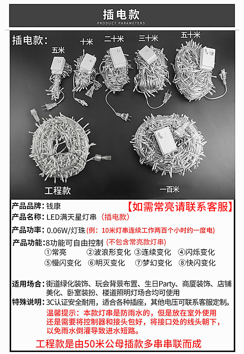 常亮24V不含变压器,请联系客服购买或自备24V电源,2米不送电池