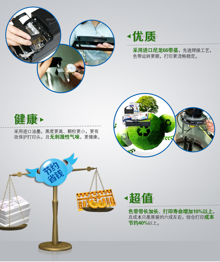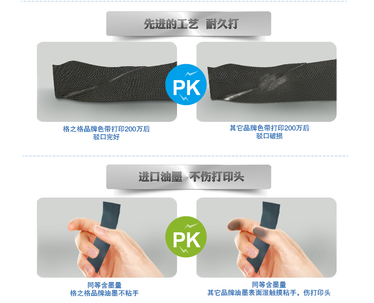 | 产品特点 | 1、采用日本高密度尼龙66带基制成; 2、采用进口油墨,油墨颗粒更小,黑度更黑; 3、采用先进的超声波焊接技术,驳口更平滑; 4、带芯尺寸更长 |