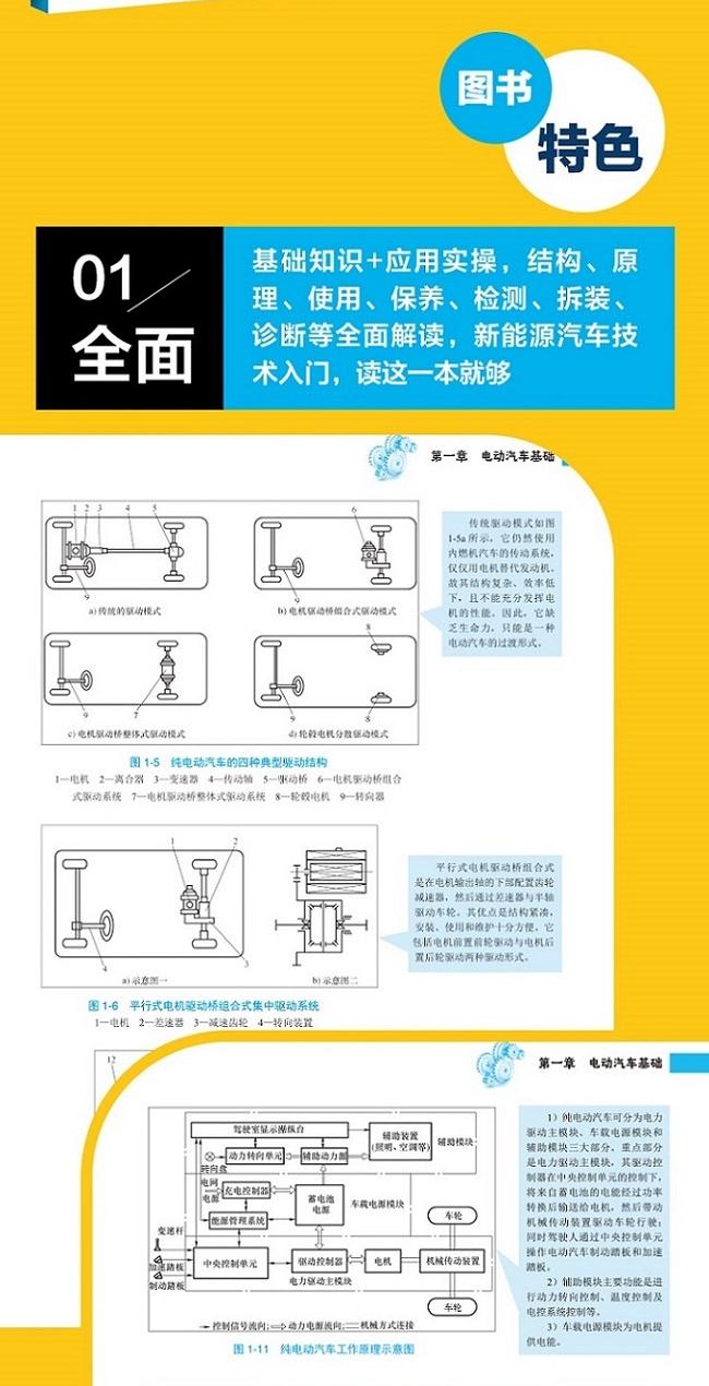 本书具有以下特色:1:原理、结构、使用、保养、检测、拆装、诊断等解读,新能源汽车技术入门,读这一本就够;2.实用:以常见纯电动汽车和混合动力汽车(北汽、比亚迪、特斯拉、丰田等)为例,采用大量的实例介绍新能源汽车的结构、原理以及拆装、保养、维修方法;3.易懂:一图一说,一步一图,轻松快速入门。